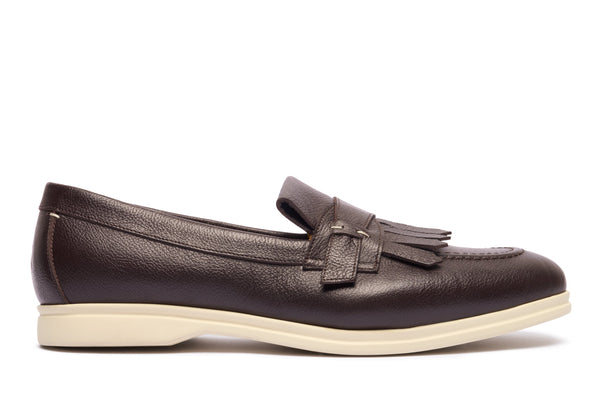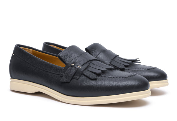 Afferma il tuo stile con un tocco di sofisticata nonchalance. Questi mocassini da uomo in pelle bottalata di prima scelta incarnano l'eleganza italiana con un dettaglio distintivo: una raffinata frangia che aggiunge personalità e carattere al tuo passo. Realizzati con una pelle di alta qualità dalla texture morbida ma resistente, questi mocassini con frangia sono la perfetta fusione tra comfort duraturo e stile impeccabile.