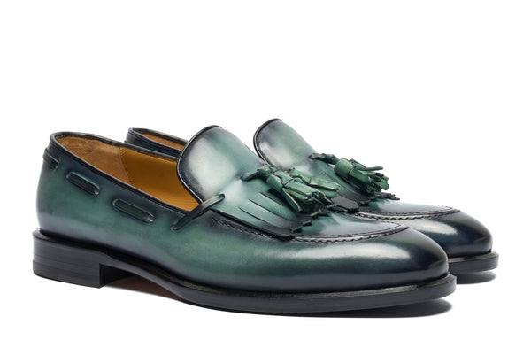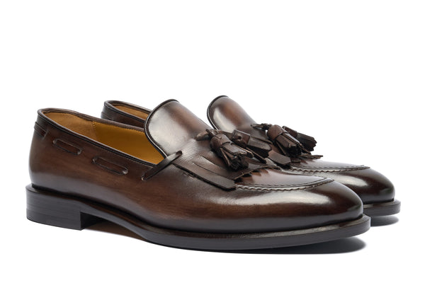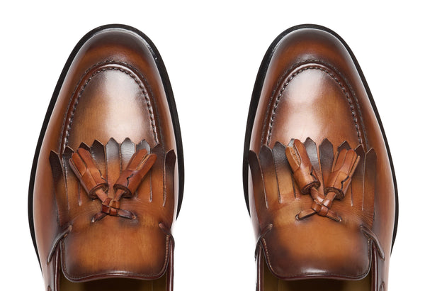 - Dyeing and antiquing of the leather using artisanal methods (3 days for each single pair).
