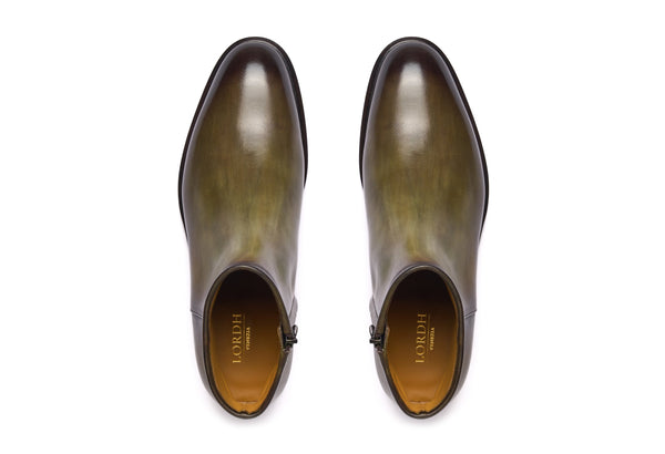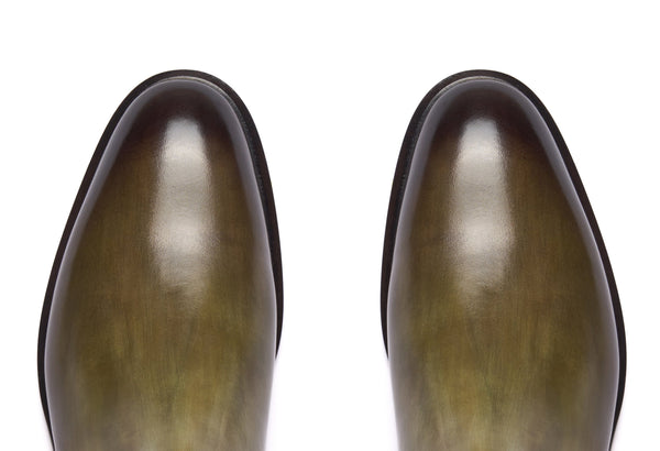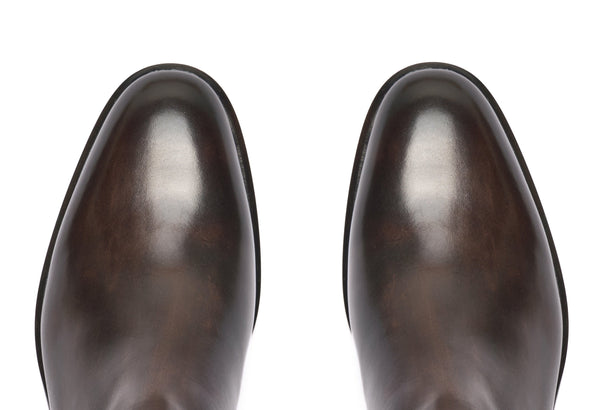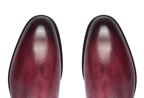 - Tintura ed anticatura della pelle con metodo artigianale (3 giorni per ogni singolo paio).