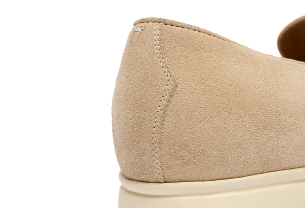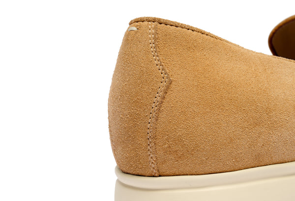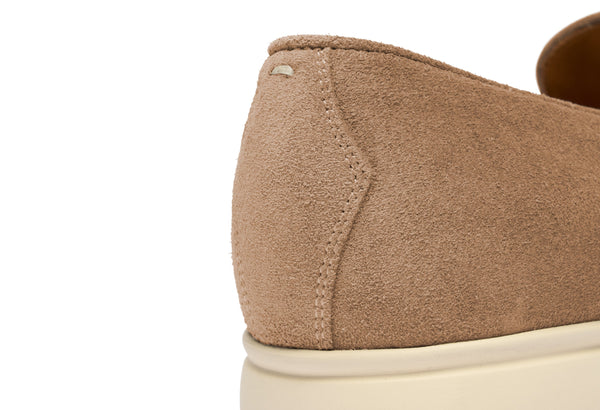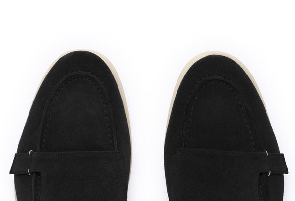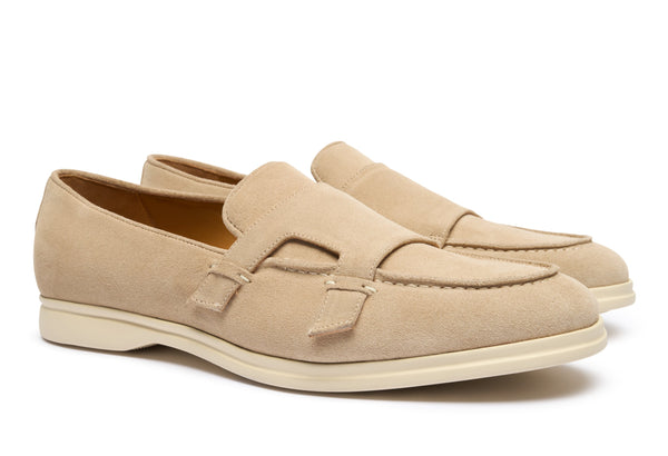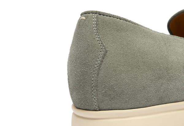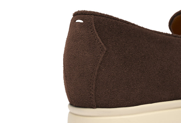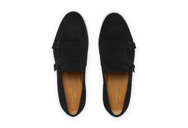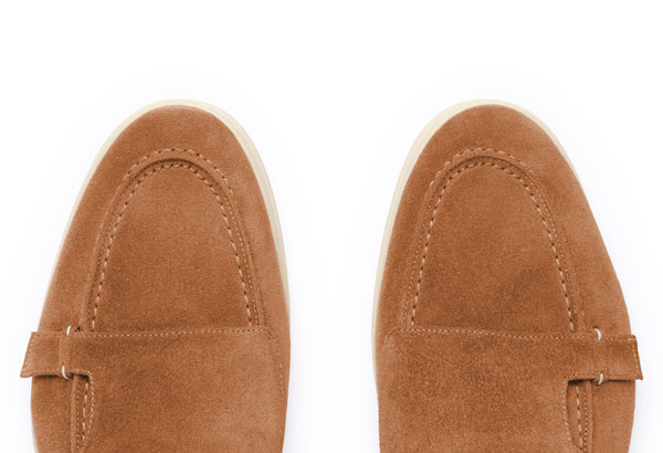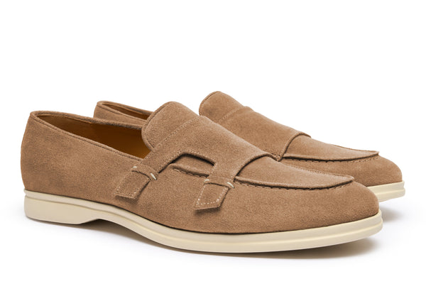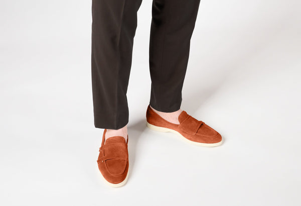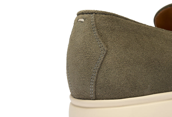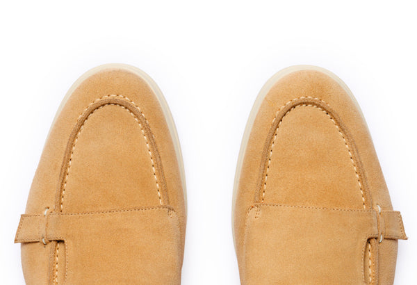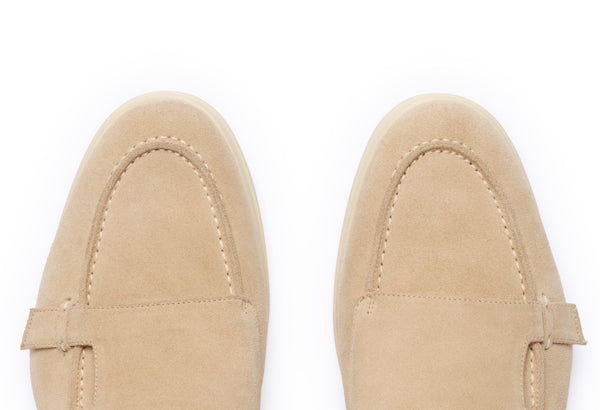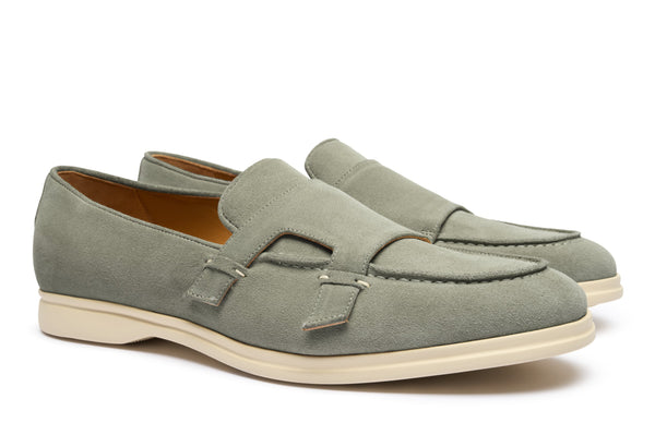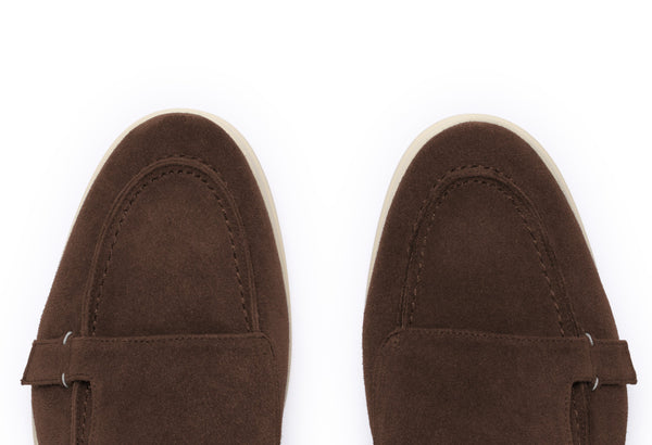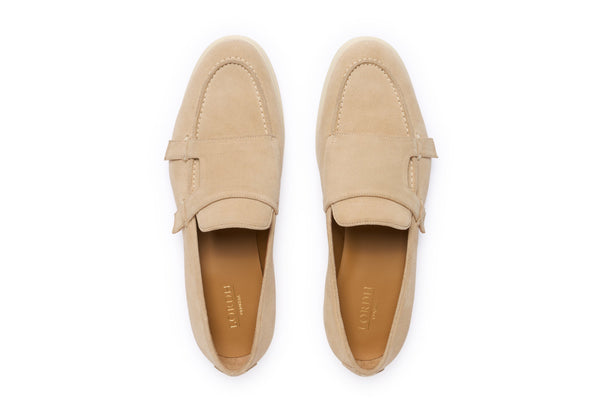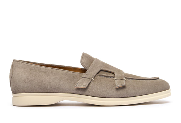 Immagina la sensazione della morbida pelle scamosciata che avvolge delicatamente il tuo piede. I doppi cinturini laterali in suede con le cuciture fatte a mano, un dettaglio di design che non passa inosservato, aggiunge un tocco di modernità e individualità. Questi non sono semplici mocassini: sono una dichiarazione di stile, un invito a distinguerti con classe.
