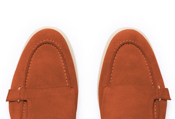 I nostri esclusivi mocassini Cristian in pregiata pelle scamosciata sono la risposta se cerchi un nuovo tocco di originalità nella tua scarpiera estiva. Questi eleganti loafers con doppio cinturino laterale fondono un design distintivo e contemporaneo con il comfort superiore della lavorazione artigianale italiana. La vibrante e sofisticata palette colori dona a queste scarpe versatili un'eleganza inconfondibile, perfette per esprimere la tua personalità in outfit casual di tendenza e per aggiungere un accento di stile unico a look più formali.