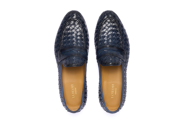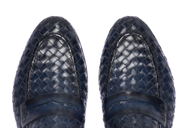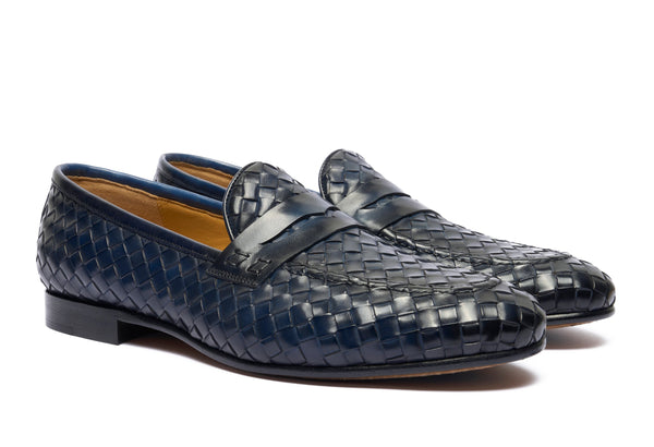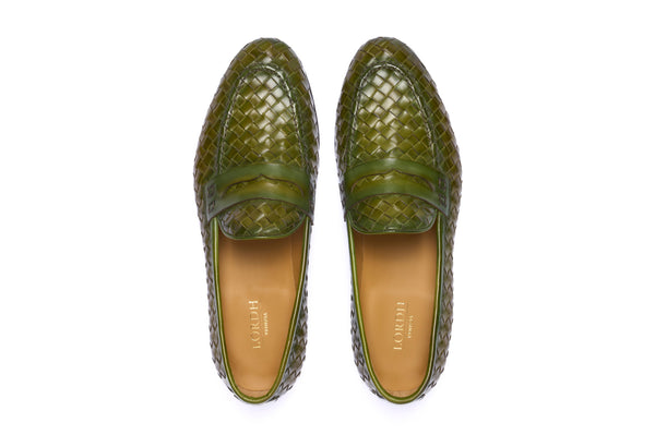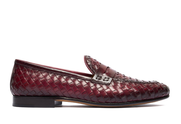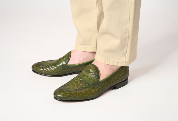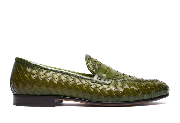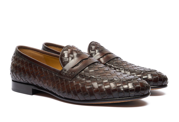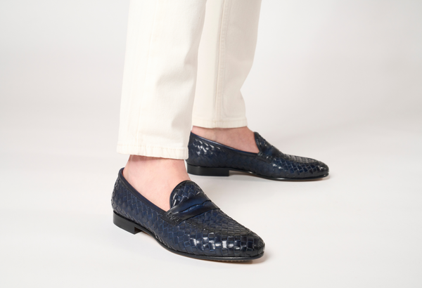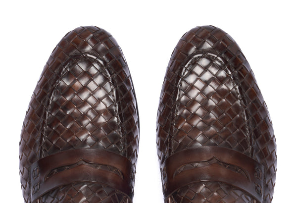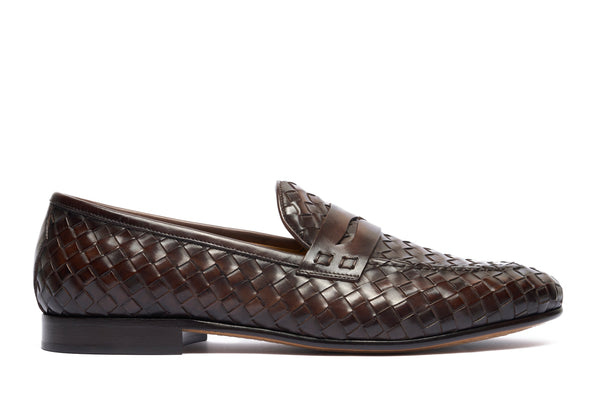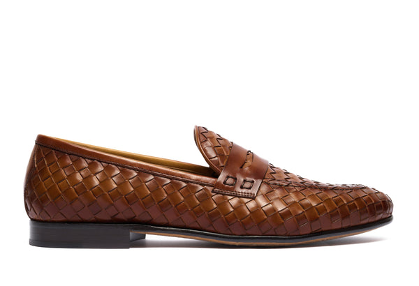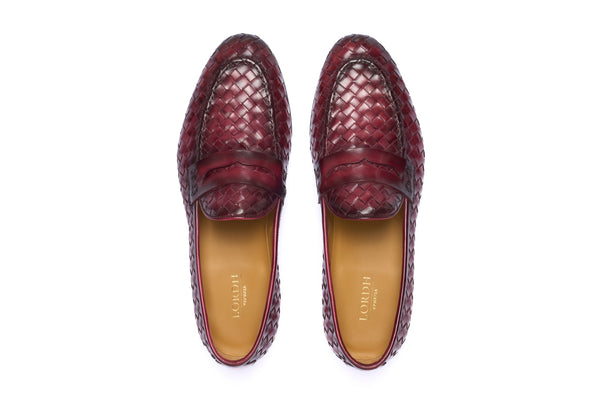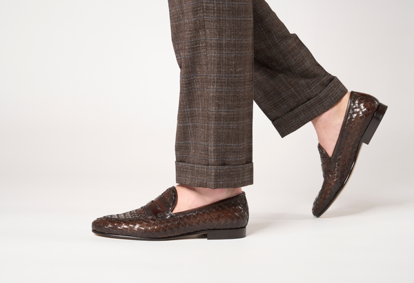 Punta affusolata. Forma: Verona- Crust Calf. Pelle bianca di vitello pieno fiore. Concia Toscana.- Intrecciatura a mano della pelle (1 giorno per ogni singolo paio).- Tintura ed anticatura della pelle con metodo artigianale (3 giorni per...