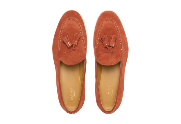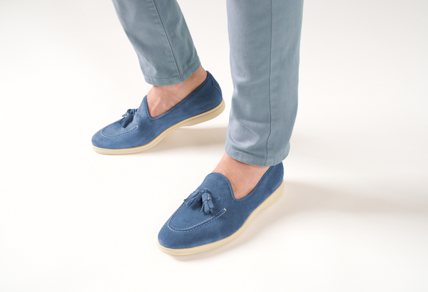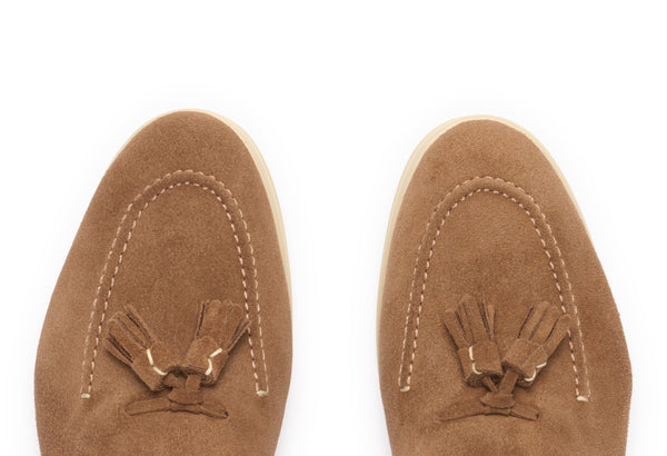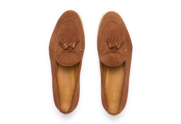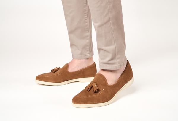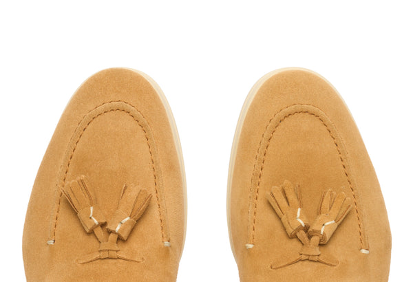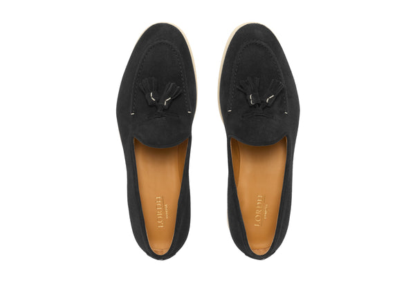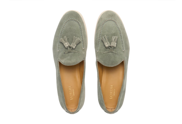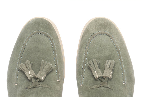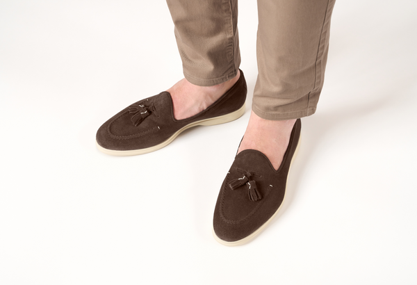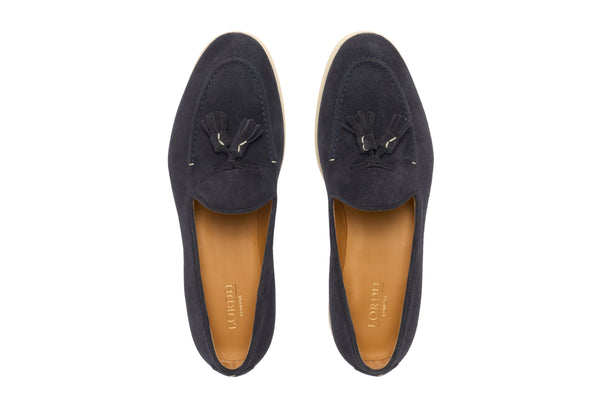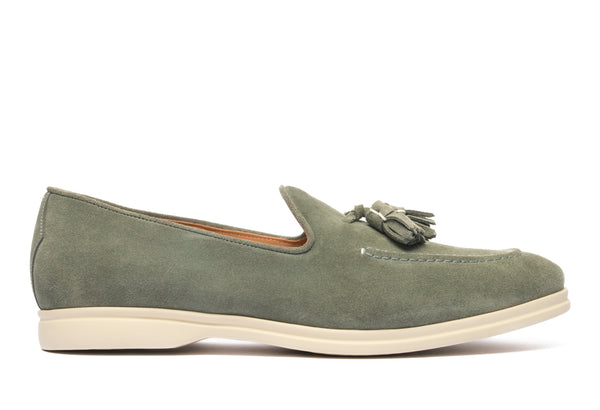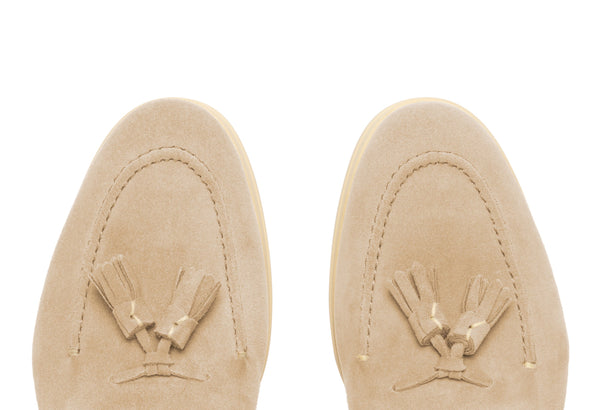 Il design classico e senza tempo è impreziosito da nappe in suede tono su tono, un dettaglio distintivo che cattura l'attenzione e riflette una cura meticolosa per lo stile. Queste nappe decorative aggiungono un elemento di dinamismo e sottolineano l'eccellenza della manifattura. La pelle scamosciata di alta qualità avvolge il piede con una morbidezza impareggiabile, garantendo un comfort che dura tutto il giorno.