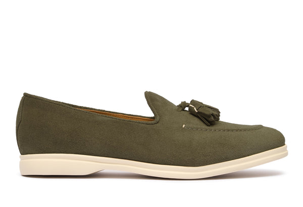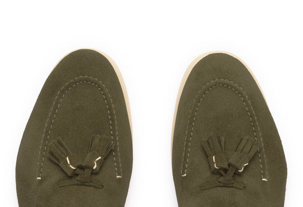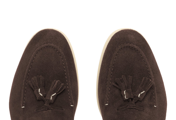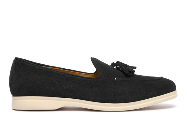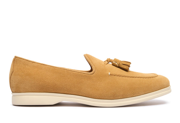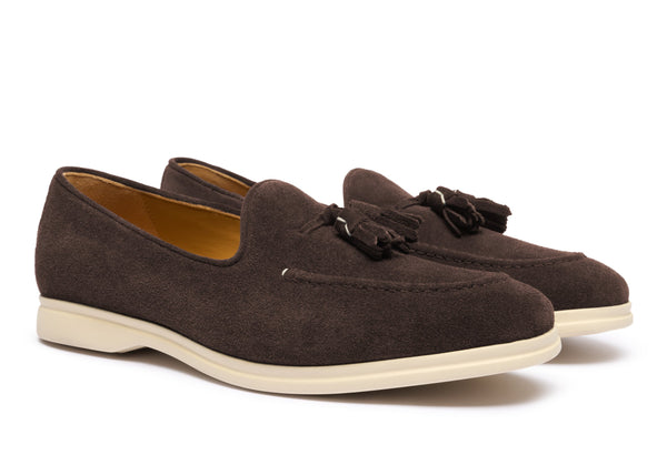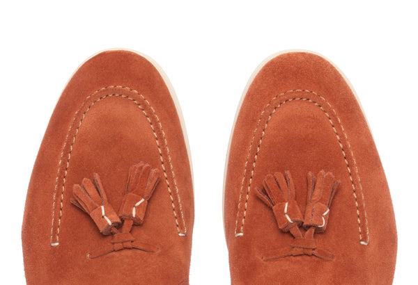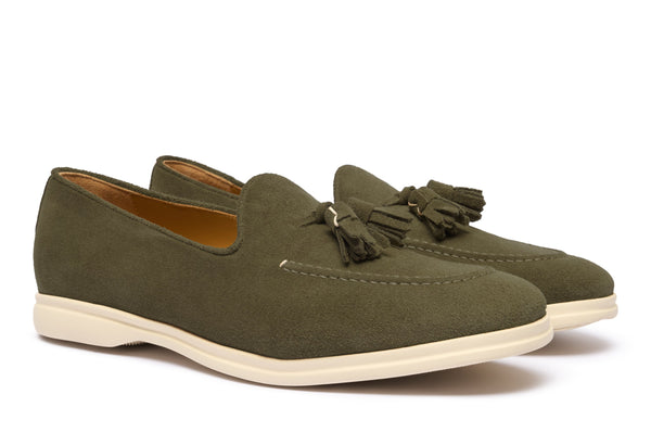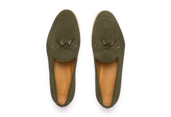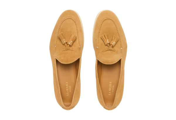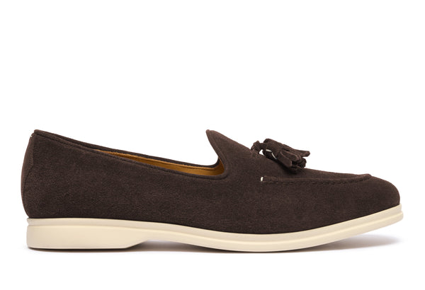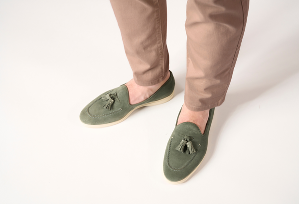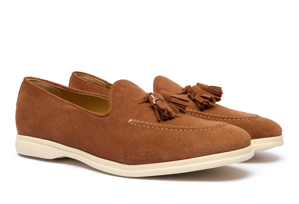 Il design classico e senza tempo è impreziosito da nappe in suede tono su tono, un dettaglio distintivo che cattura l'attenzione e riflette una cura meticolosa per lo stile. Queste nappe decorative aggiungono un elemento di dinamismo e sottolineano l'eccellenza della manifattura. La pelle scamosciata di alta qualità avvolge il piede con una morbidezza impareggiabile, garantendo un comfort che dura tutto il giorno.