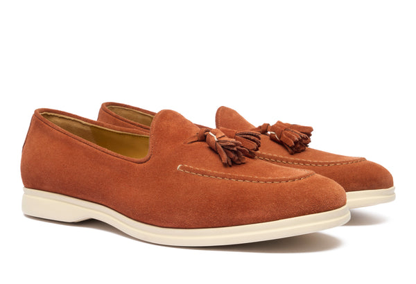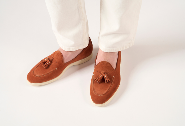 Esprimi la tua individualità con i nostri esclusivi mocassini Giorgio da uomo, realizzati in pregiata pelle scamosciata. Questi eleganti tassel loafers rappresentano la perfetta armonia tra il lusso discreto della lavorazione artigianale italiana e un comfort superiore. La tonalità calda e versatile eleva con naturalezza sia i tuoi look casual ricercati che i tuoi outfit formali, conferendo un tocco di sofisticata originalità.