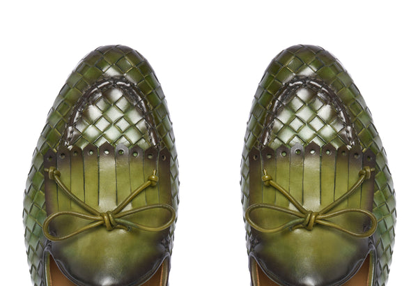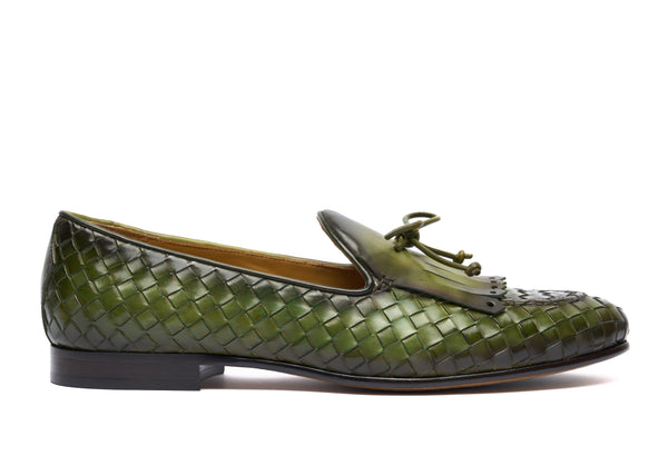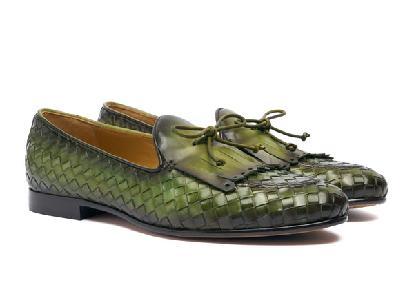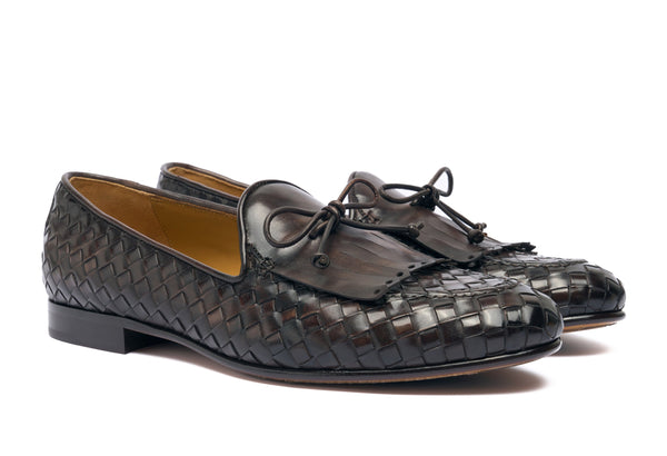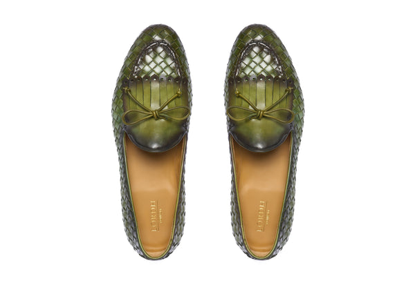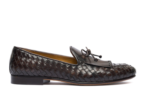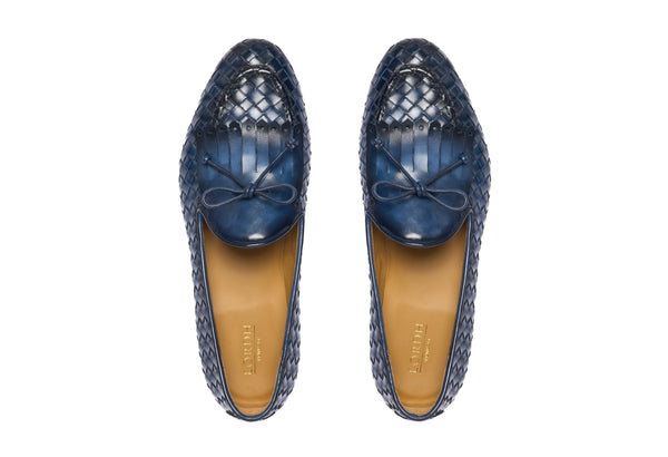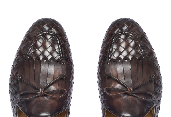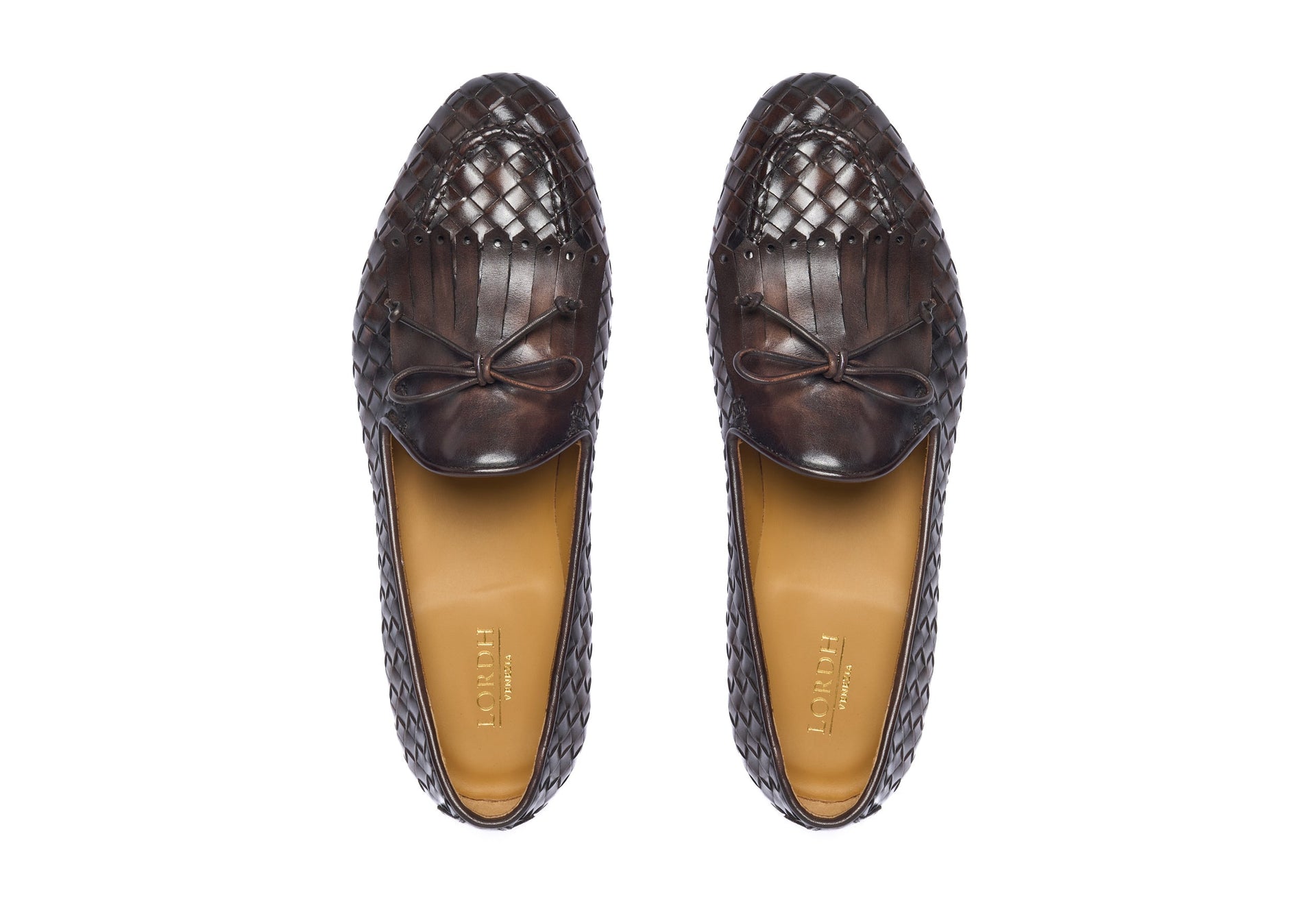 - Intrecciatura a mano della pelle (1 giorno per ogni singolo paio).