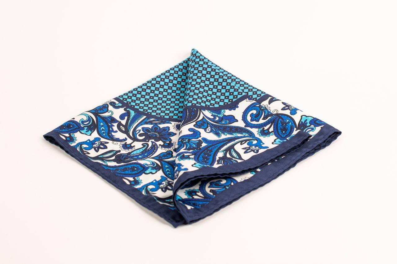 Introducing the Dapper Paisley Navy & Burgundy Silk Pocket Square, a stylish accessory that adds a touch of sophistication to any outfit. This pocket square features a captivating blue and orange paisley pattern, creating a striking contrast against the navy and burgundy silk fabric. Perfectly sized to fit in your pocket, this pocket square is a versatile addition to your wardrobe, suitable for both formal and casual occasions. Elevate your style with this elegant and eye-catching accessory.