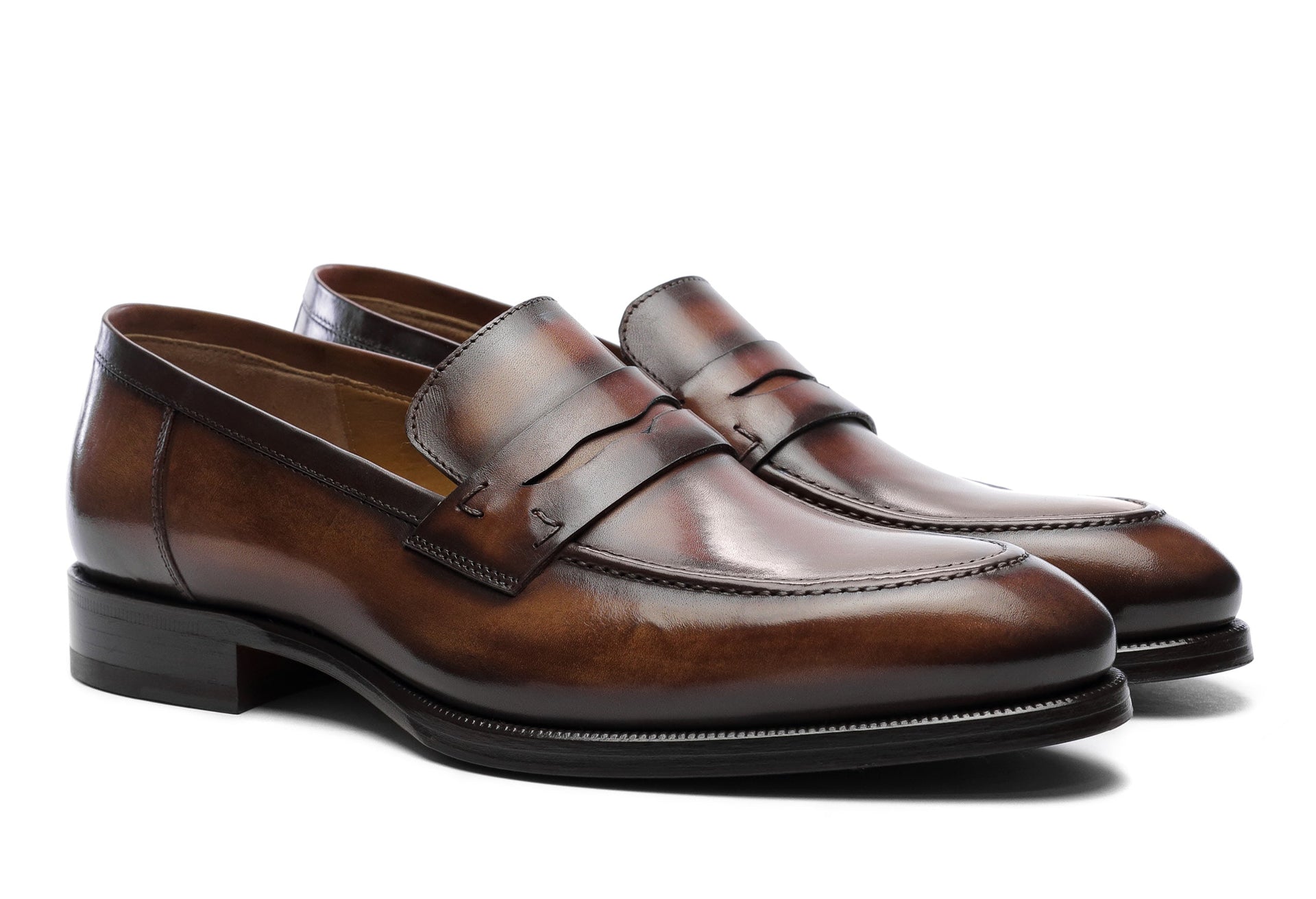 - Dyeing and antiquing of the leather using artisanal methods (3 days for each single pair). - 9mm sole. Heel height 27mm. Tuscan leather. - In the box you will find two cotton drill travel...