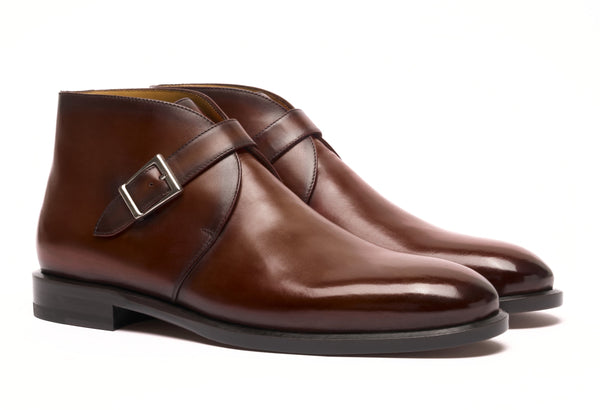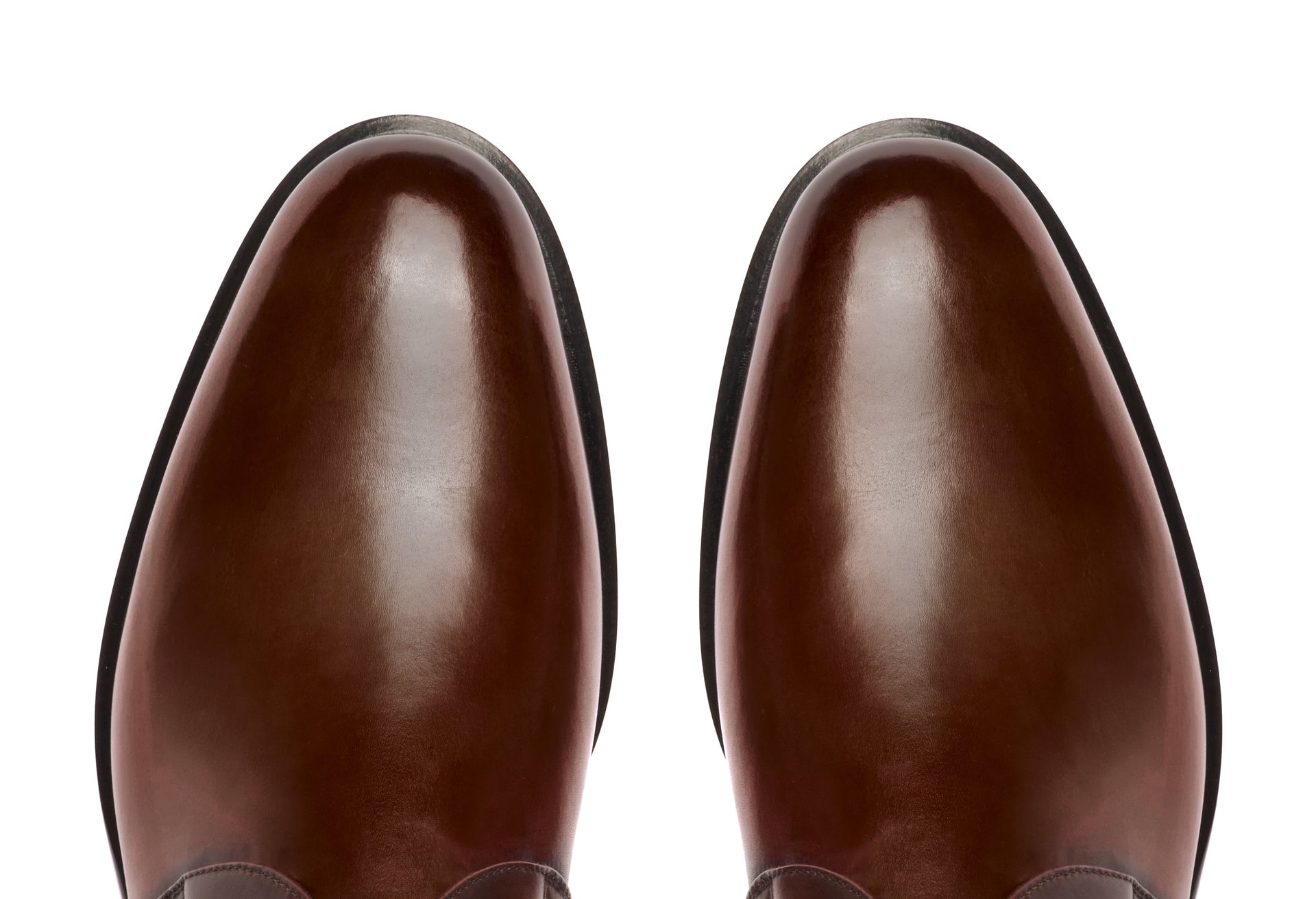 - Dyeing and antiquing of the leather using artisanal methods (3 days for each single pair). - 9mm sole. Heel height 27mm. Tuscan leather. - In the box you will find two cotton drill travel...