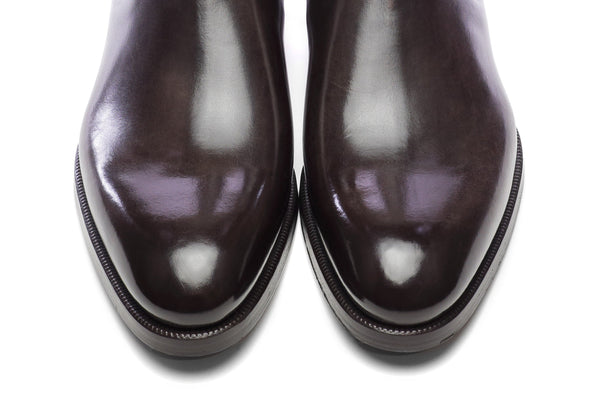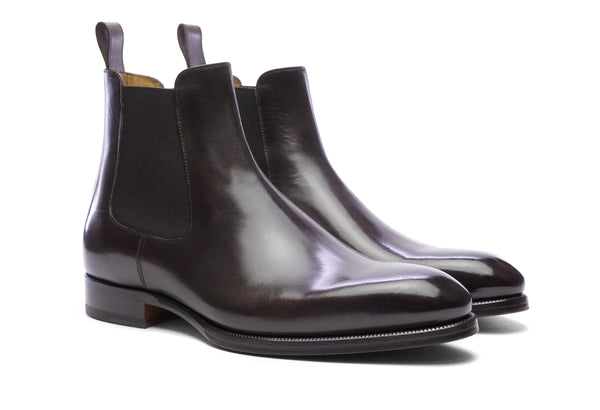 - Dyeing and antiquing of the leather using artisanal methods (3 days for each single pair). - 9mm sole. Heel height 27mm. Tuscan leather. - In the box you will find two cotton drill travel...