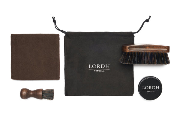 Esclusivamente per anticatura Lordh- Crema protettiva per pelle anticata (50ml)- Barattolo in alluminio con tappo a vite- Spazzola in faggio con setole in crine di cavallo- Spazzola spargi crema in faggio con setole in crine di cavallo- Panno...