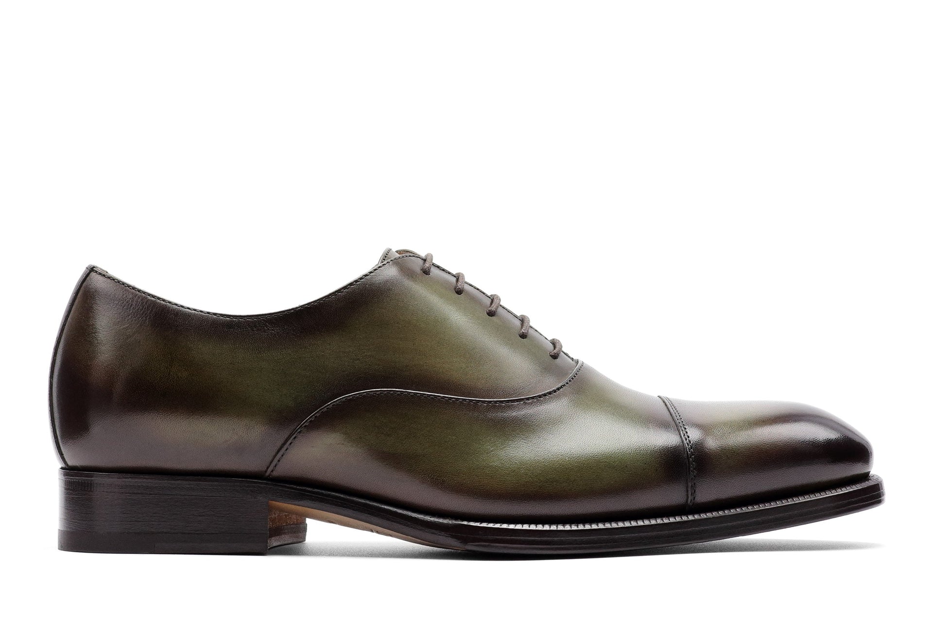 - Dyeing and antiquing of the leather using artisanal methods (3 days for each single pair). - 9mm sole. Heel height 27mm. Tuscan leather. - In the box you will find two cotton drill travel...