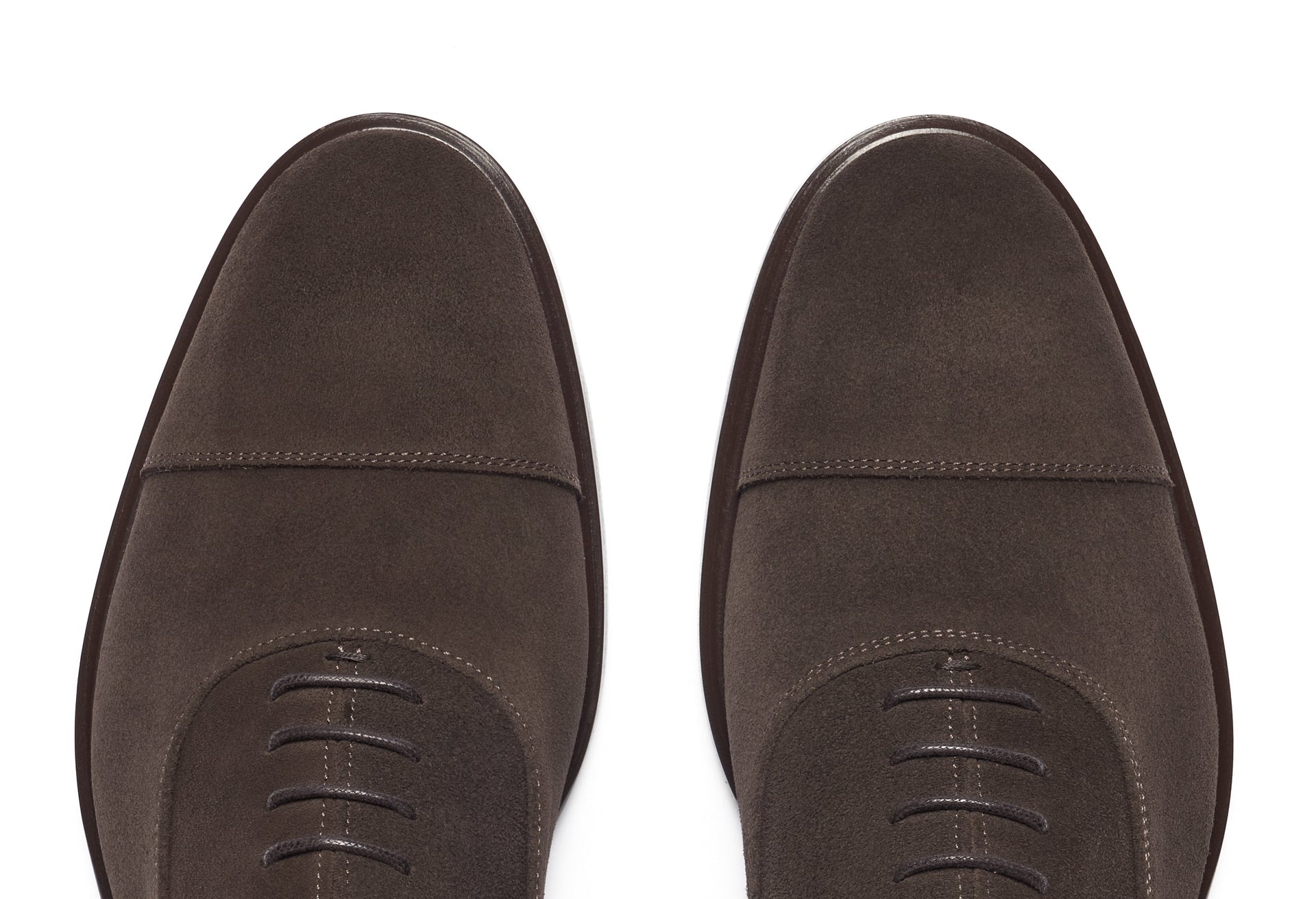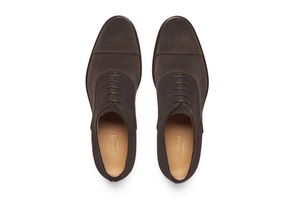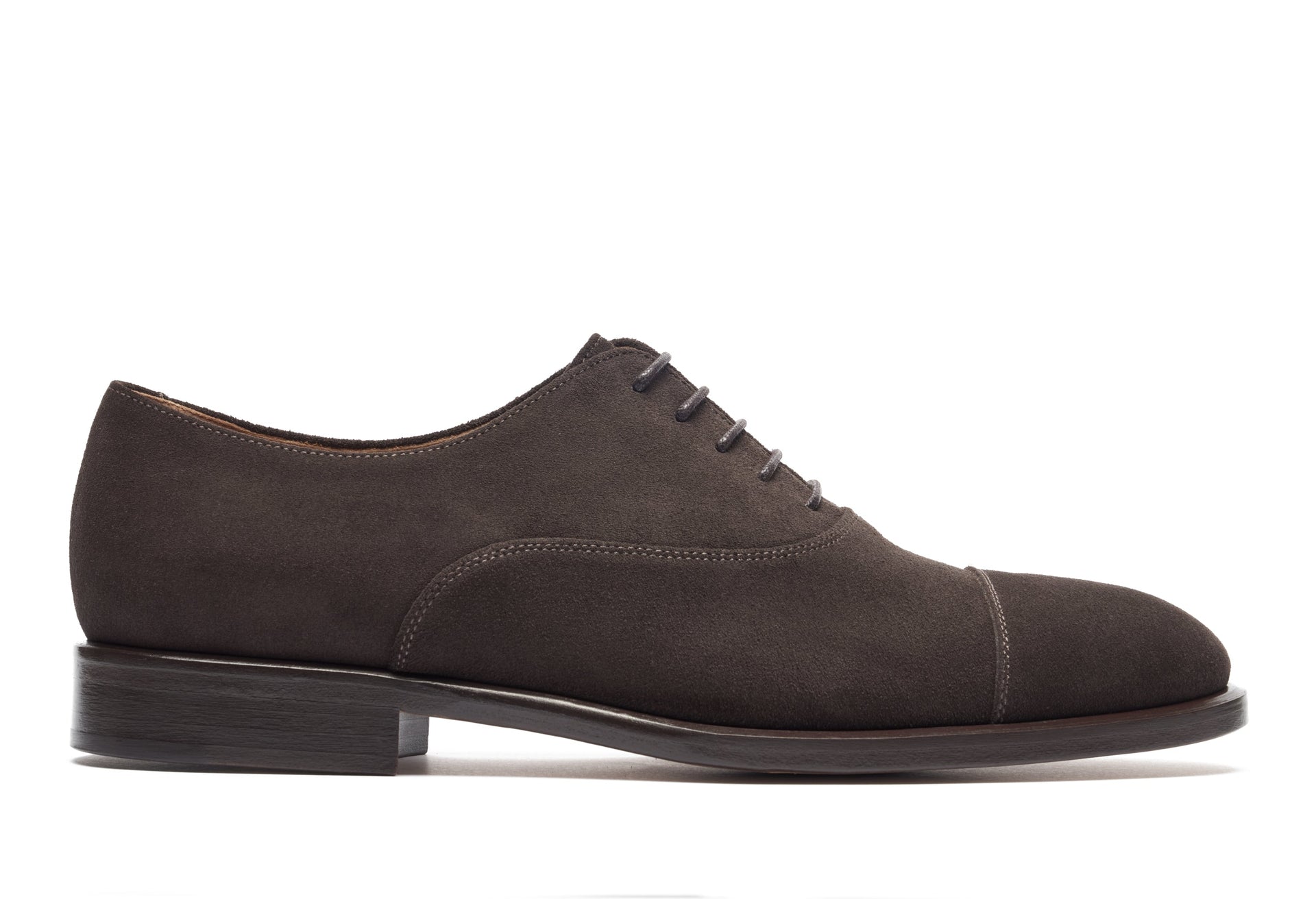 Punta affusolata. Forma: Venezia- Suede Calf. Pelle scamosciata idrorepellente di vitello. Concia Toscana.- Suola di 9mm. Altezza tacco 27mm. Cuoio di Toscana. - Costruzione Blake con cucitura del fondo.- Inclusi lacci tondi di cotone cerato 2,5mm lunghezza 90cm.- Nella scatola...
