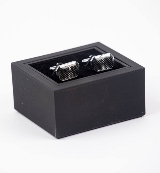 Introducing the sleek and sophisticated Edward cufflinks, a must-have accessory for any gentleman's wardrobe. This exquisite pair of black cufflinks comes elegantly presented in a sleek black box, adding a touch of luxury to any formal attire. Crafted with meticulous attention to detail, these cufflinks are the perfect blend of style and functionality, making them an ideal choice for special occasions or everyday wear. Elevate your ensemble with the timeless elegance of the Edward cufflinks, a true statement of refined taste.