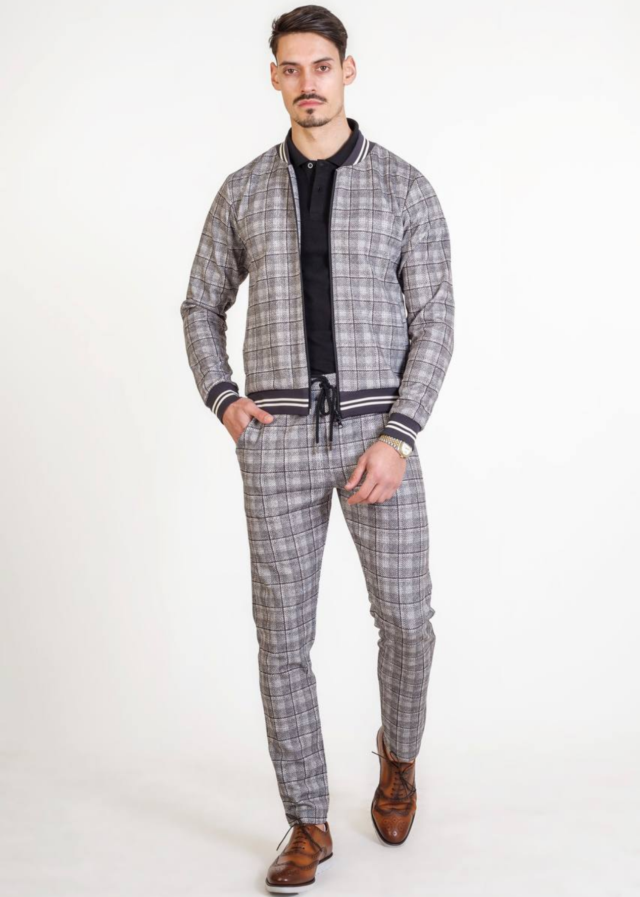 Introducing the Monaco Track Suit, a stylish and sophisticated ensemble designed for the modern man. This checkered suit features a timeless pattern that exudes confidence and elegance. Crafted with meticulous attention to detail, the suit is tailored to perfection, ensuring a comfortable and flattering fit. Whether worn for a formal occasion or a night out, this suit is guaranteed to make a lasting impression. Stand out from the crowd with the Monaco Track Suit, a true symbol of refined fashion.