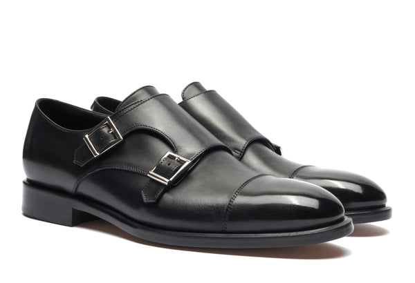 Punta affusolata. Forma: Venezia- Superior Black Box Calf. Pelle nera superiore di vitello. Concia Toscana.- Suola di 9mm. Altezza tacco 27mm. Cuoio di Toscana. - Costruzione Blake con cucitura del fondo.- Nella scatola troverai due sacchetti da viaggio in...