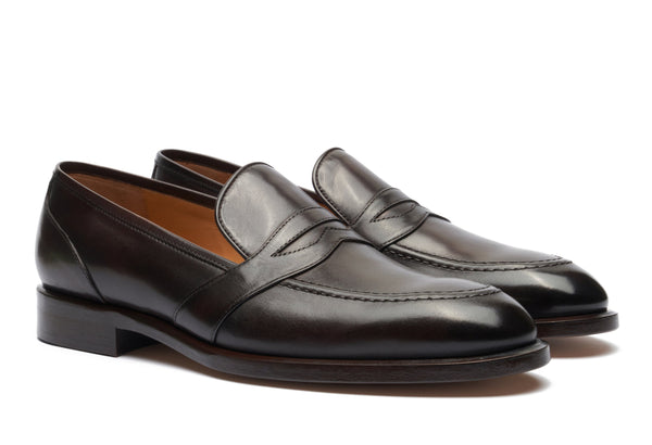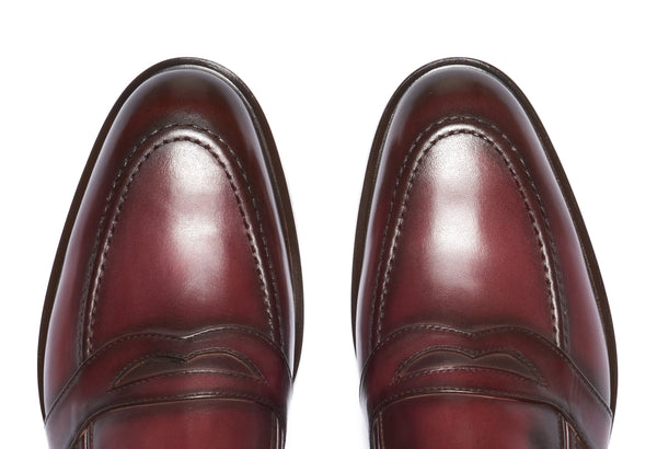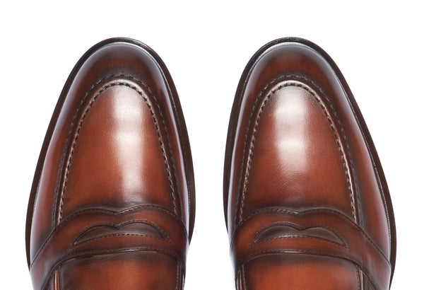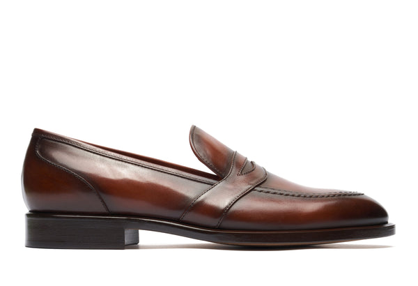 Punta affusolata. Forma: Venezia- Crust Calf. Pelle bianca di vitello pieno fiore. Concia Toscana.- Tintura ed anticatura della pelle con metodo artigianale (3 giorni per ogni singolo paio).- Suola di 9mm. Altezza tacco 27mm. Cuoio di Toscana. -...